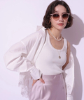 ほど良くボディにフィットするシルエットが、女性らしさを引き立たせてくれます。