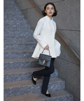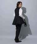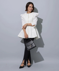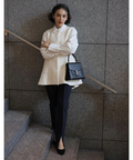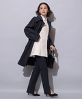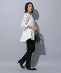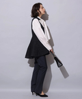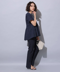 縦ラインを強調するセンターラインのタックもポイント。裾にスリットを入れることで足首がちらりと覗き、スタイリングにヌケ感もプラスしてくれます。