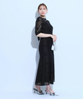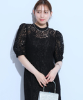 花模様の総レース仕立てでレディムード薫るデザインに仕上げたドレス。