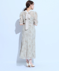 パフスリーブや優美なマーメイドラインが女性らしいエレガントさを演出。ほんのりとした肌見せ感も軽やかなヌケ感があり、大人の色香を漂わせます。