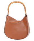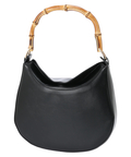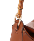 バンブーハンドルがアクセントになったハーフムーンシルエットのバッグ。