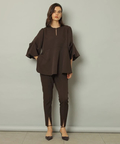 ふんわりとしたシルエットで女性らしい優しげな雰囲気を演出してくれます。気になるボディラインも優しくカバーしてくれるのも嬉しいポイント。