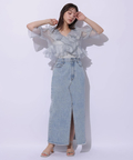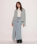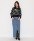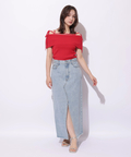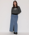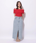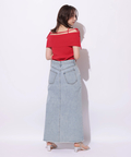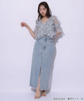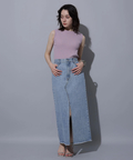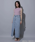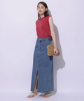 大胆にあしらわれたスリットが抜け感のある印象を与えるスカート。