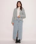 デニム地で仕立てられ、程よくラフな雰囲気を演出します。