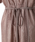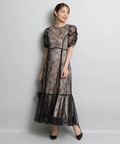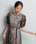 パイピングの切替がモダンなアクセントに映えるドレス。