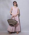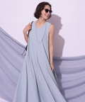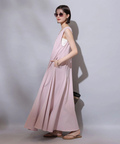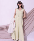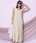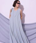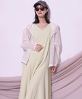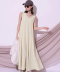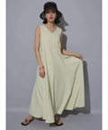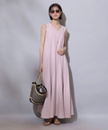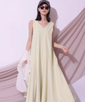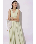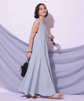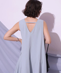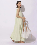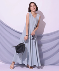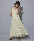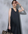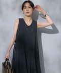 裾に向かって広がるAラインシルエットで女性らしい揺らめきを演出するワンピース。