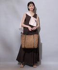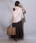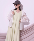 バックはざっくりと開いているので、キャミソールと合わせたスタイリングも◎
