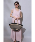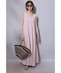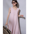 ネックラインはV字に切り込まれ、すっきりとした印象をプラスします。