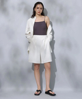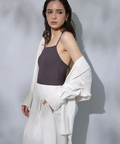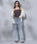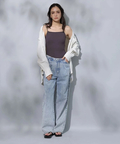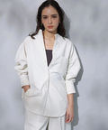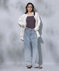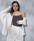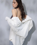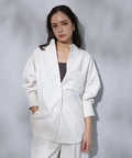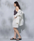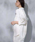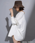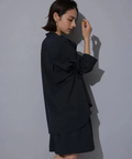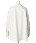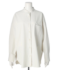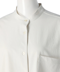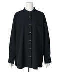 シンプルなバンドカラーで顔周りもすっきりとした印象に見せてくれます。オーバーシルエットでリラックスして着用でき、重ね着も楽にすることができます。