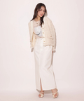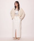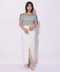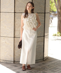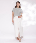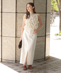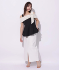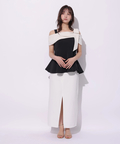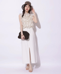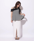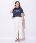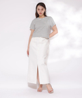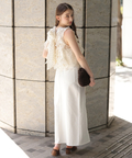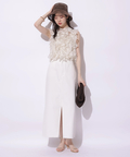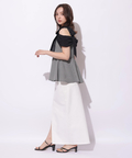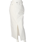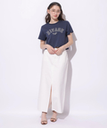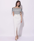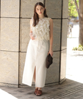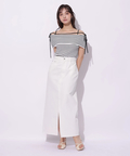 大胆にあしらわれたスリットが抜け感のある印象を与えるスカート。