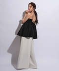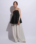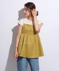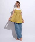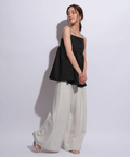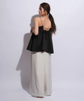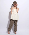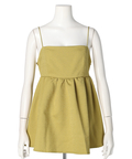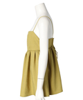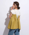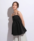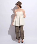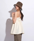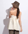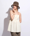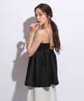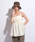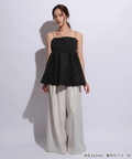 ふんわりとしたボリュームのあるペプラム風シルエットも、レディムードを高めてくれます。バックで結ぶリボンも愛らしいアクセントをプラス。