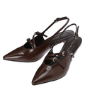 シャープなポインテッドトゥや華奢なヒールデザインで、足元をエレガントな印象に演出してくれます。