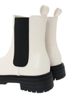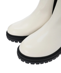 フェイクレザーで仕立てられたデザインが大人っぽさを演出するサイドゴアブーツ。