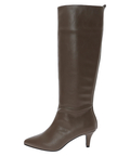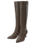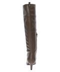 縦に切り替えられたデザインがすっきりとした足元を演出するロングブーツ。