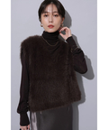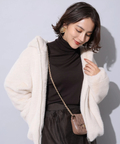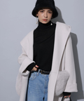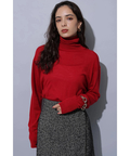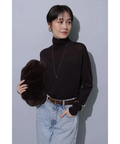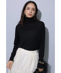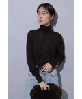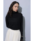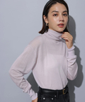 肌触りのやさしいウール100%を使用したタートルネックトップス。