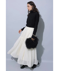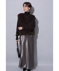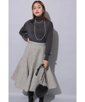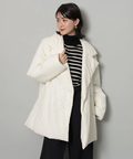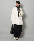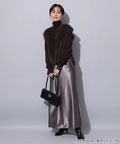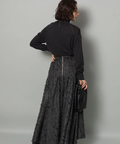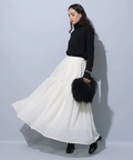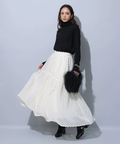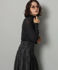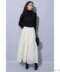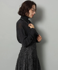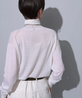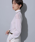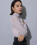 透け感のあるシアー素材で仕立てられ、やわらかい雰囲気を演出します。