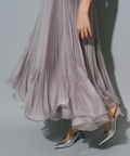 プリーツ×メローなデザインが、ドラマティックなシルエットを生み出すドレス。