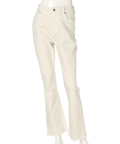 ゆるやかに広がるセミフレアシルエットが上品なデニムパンツ。