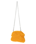 コードのクロシェ編みが存在感を放つクラッチバッグ。