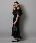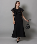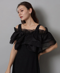 クロスするティアードフリルが、装いを華やかに演出するワンピース。