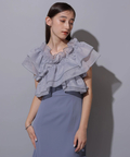 クロスするティアードフリルが、装いを華やかに演出するワンピース。