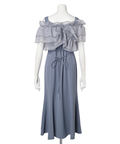 オフショルとしても楽しめる2WAYデザイン。バックで結ぶ華奢なリボンも愛らしさをプラスします。