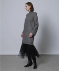 ラメ混ニットのワンピースにチュールスカートを組み合わせたセットアイテム。