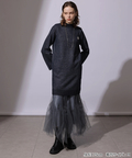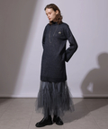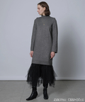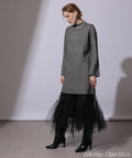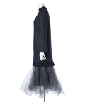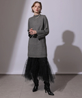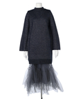 ラメ混ニットのワンピースにチュールスカートを組み合わせたセットアイテム。