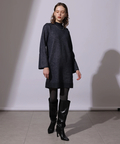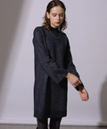 ワンピースは少し高さのあるネックとすっきりとしたタイトシルエットが上品な印象を演出。後ろ裾にはスリットが施されています。