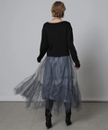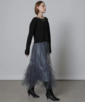 スカートはチュールのランダムに切り替えた裾が華やかさをプラス。セパレートが可能なので、組み合わせ方次第で多彩なスタイリングのアレンジもお楽しみいただけます。