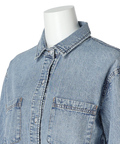 味わいのある色落ち加工がこなれ感を演出するデニムシャツ。