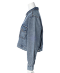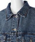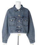 短めのショート丈のルックスで、脚長効果をもたらすGジャン。