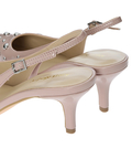 シャープなポインテッドトゥも足元をエレガントに演出。バックストラップで軽やかなヌケ感をプラスしてくれます。