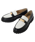 アッパー部分に施されたメタルパーツが煌びやかなアクセントになるローファー。