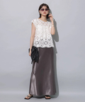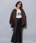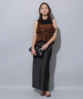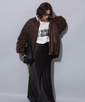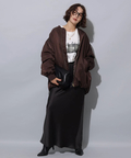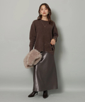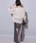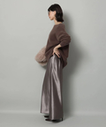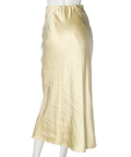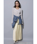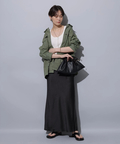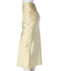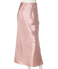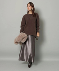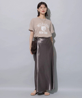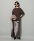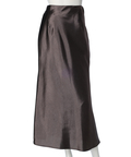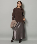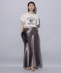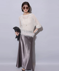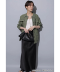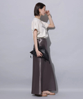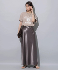 サテンの柔らかな光沢で上品な印象に仕上げたロングスカート。