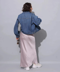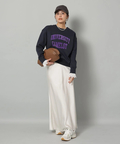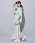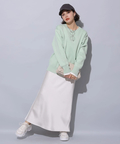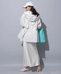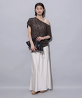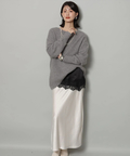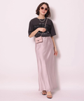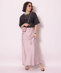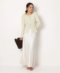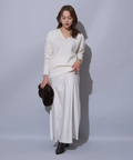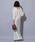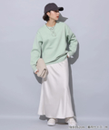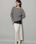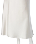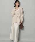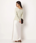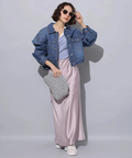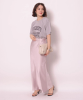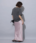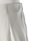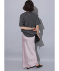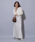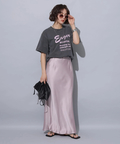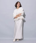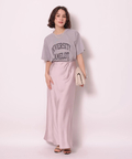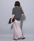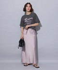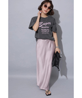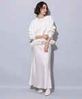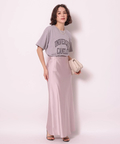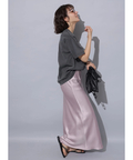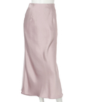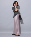 サテンの柔らかな光沢で上品な印象に仕上げたロングスカート。
