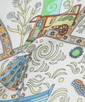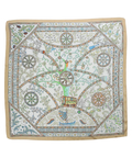 レトロモダンな雰囲気漂う更紗柄のスカーフ。