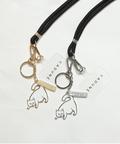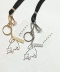 ブランドロゴが施されたタブとキーリング付きのネコチャームが付いています。