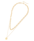 モチーフのワンポイントとデザインチェーンを組み合わせた2連ネックレス。異なる長さにすることで、スタイリングに奥行き感をプラスしてくれます。アジャスター付きでサイズ調整も可能◎カジュアルからキレイめにと、様々なスタイリングにも品よくマッチしてくれるアイテムです。