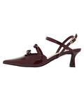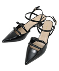 華奢なダブルリボンが上品な甘さをプラスするミュール。シャープなポインテッドトゥで、エレガントな足元を演出してくれます。クロスデザインのアンクルストラップベルトもポイント◎カジュアルからドレススタイルにと、様々なスタイリングにもマッチしてくれる1足です。
