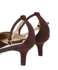 つま先の尖ったポインテッドトゥのデザインが華奢な印象を与えるパンプス。