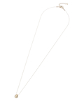 細めのチェーンを使用しているため、首元にきれいめな印象を与えます。