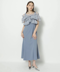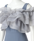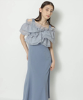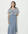 クロスするティアードフリルが、装いを華やかに演出するワンピース。