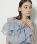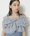 オフショルとしても楽しめる2WAYデザイン。バックで結ぶ華奢なリボンも愛らしさをプラスします。