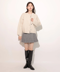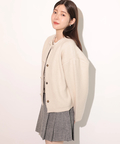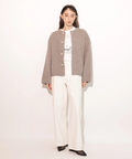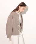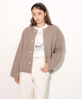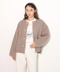 大粒のパールボタンが華感をプラスするニットジャケット。