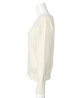 浅めのネックラインで首や顔周りはすっきりとした印象にみせてくれます。