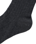 フィットする履き心地のリブロングソックス。縦ラインを強調することで、足元をすっきりとキレイに見せてくれます。シックなカラーとシンプルなデザインで合わせるテイストを問わず、オンにもオフにも活躍してくれるアイテムです。