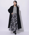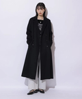 ドラマティックに広がるボリュームフレアなバックシルエットが印象的なロングコート。