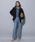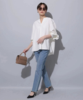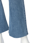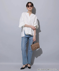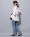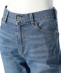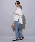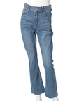 ゆるやかに広がるセミフレアシルエットが上品なデニムパンツ。
