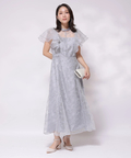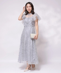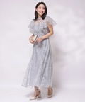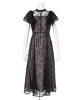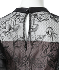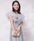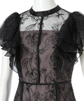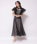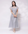 チュールに花模様の刺しゅうを施したエレガントなラッフルドレス。